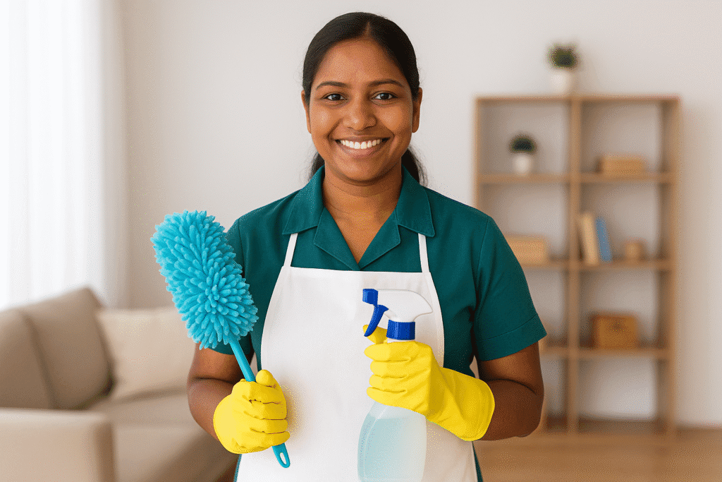 - خدمة احترافية: خادمات مدربات على التنظيف، الكي، الغسيل، وحتى الطبخ الخفيف.